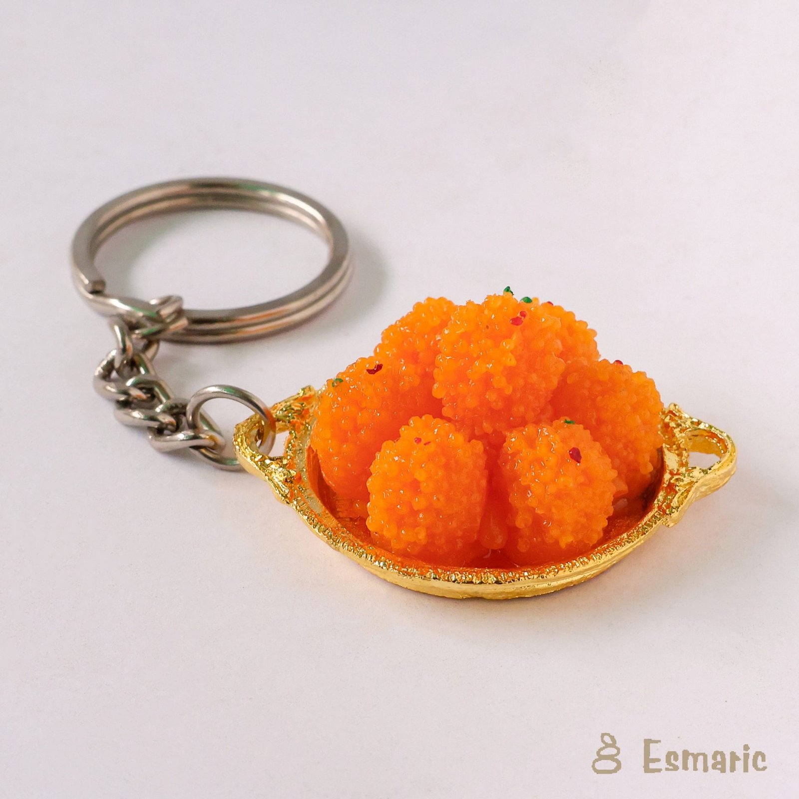 Boondi Laddu, the sweet spheres of happiness that are synonymous with festive celebrations in India! Made from tiny droplets of besan batter and soaked in sugar syrup, these laddus are a delightful treat for all occasions. Our Boondi Laddu Miniature Keychain captures the essence of this beloved sweet in miniature form. Each tiny laddu is meticulously handcrafted to evoke the texture and sweetness of the traditional delicacy. Perfect for adding a touch of sweetness to your keys or gifting to friends and family who appreciate the joy of festive treats. Experience the warmth and happiness of Indian celebrations with our intricately handcrafted Boondi Laddu Miniature Keychain.