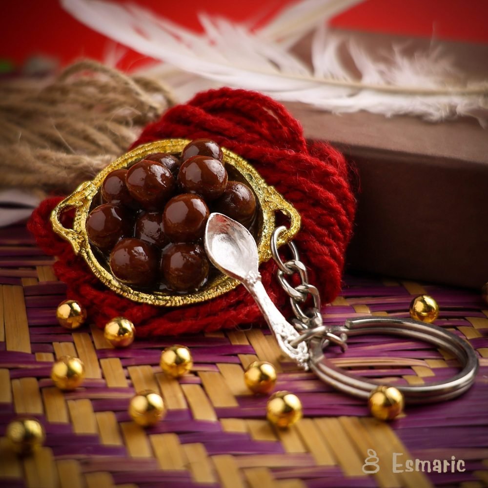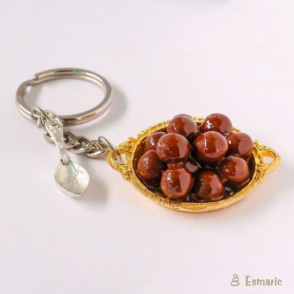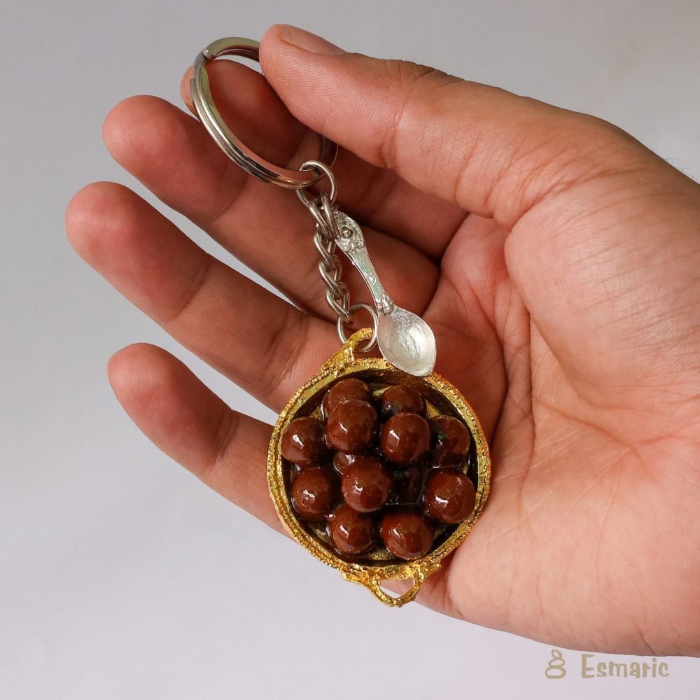 Gulab Jamun, the epitome of indulgence in Indian sweets! These soft, spongy dumplings soaked in fragrant sugar syrup are a delight for the senses. Introducing our exquisite Handcrafted Gulab Jamun Miniature, a tiny treasure reminiscent of India’s beloved dessert. Crafted with care and attention to detail, each miniature keychain of gulab jamun captures the rich texture and aromatic sweetness of the traditional delicacy. Perfect for adding a touch of sweetness or gifting to friends and family who have a sweet tooth. Experience the decadence of Indian desserts with our meticulously handcrafted Gulab Jamun Miniature Keychain.